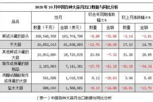 2025年10月蒜苔出口數(shù)據(jù)(按總量)