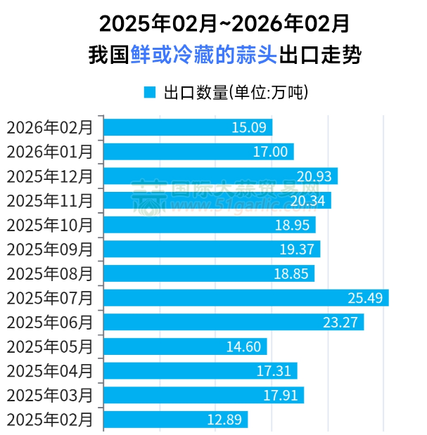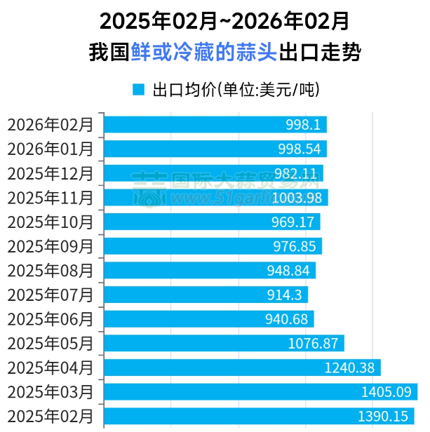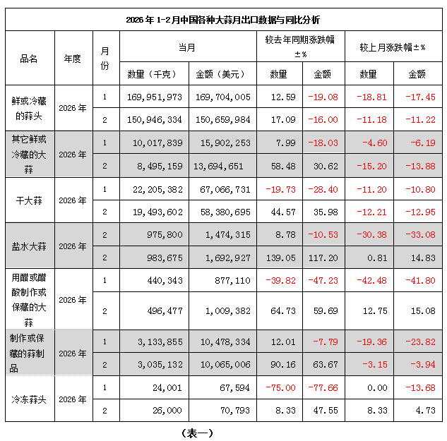 2026年1-2月大蒜出口量增價跌