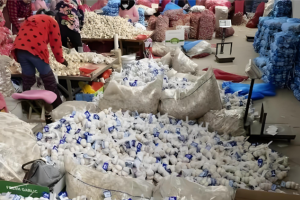 邳州產區(qū)庫內蒜走貨良好,待售貨源維持充裕態(tài)勢,賣家要價堅持,買家以國內客商拿貨為主,批發(fā)采購主要以5.5cm以上級蒜為主,節(jié)前市場交易氛圍略顯積極,成交量穩(wěn)中略增,價格無明顯變化。目前庫內6.5cm價格在3.65-3.85元/斤,6.0cm價格在3.45-3.65元/斤,5.5cm價格在3.30-3.45元/斤,5.0cm的價格在3.25元/斤左右。